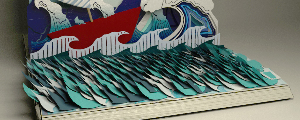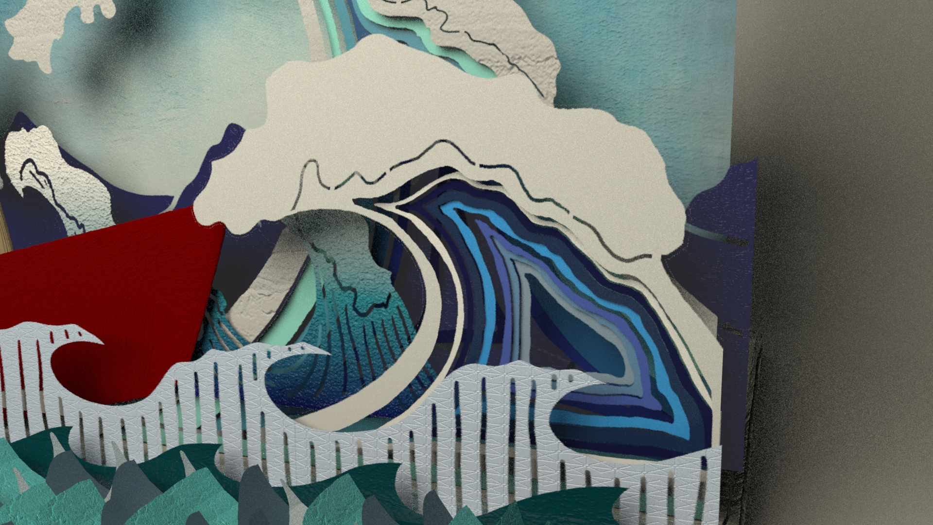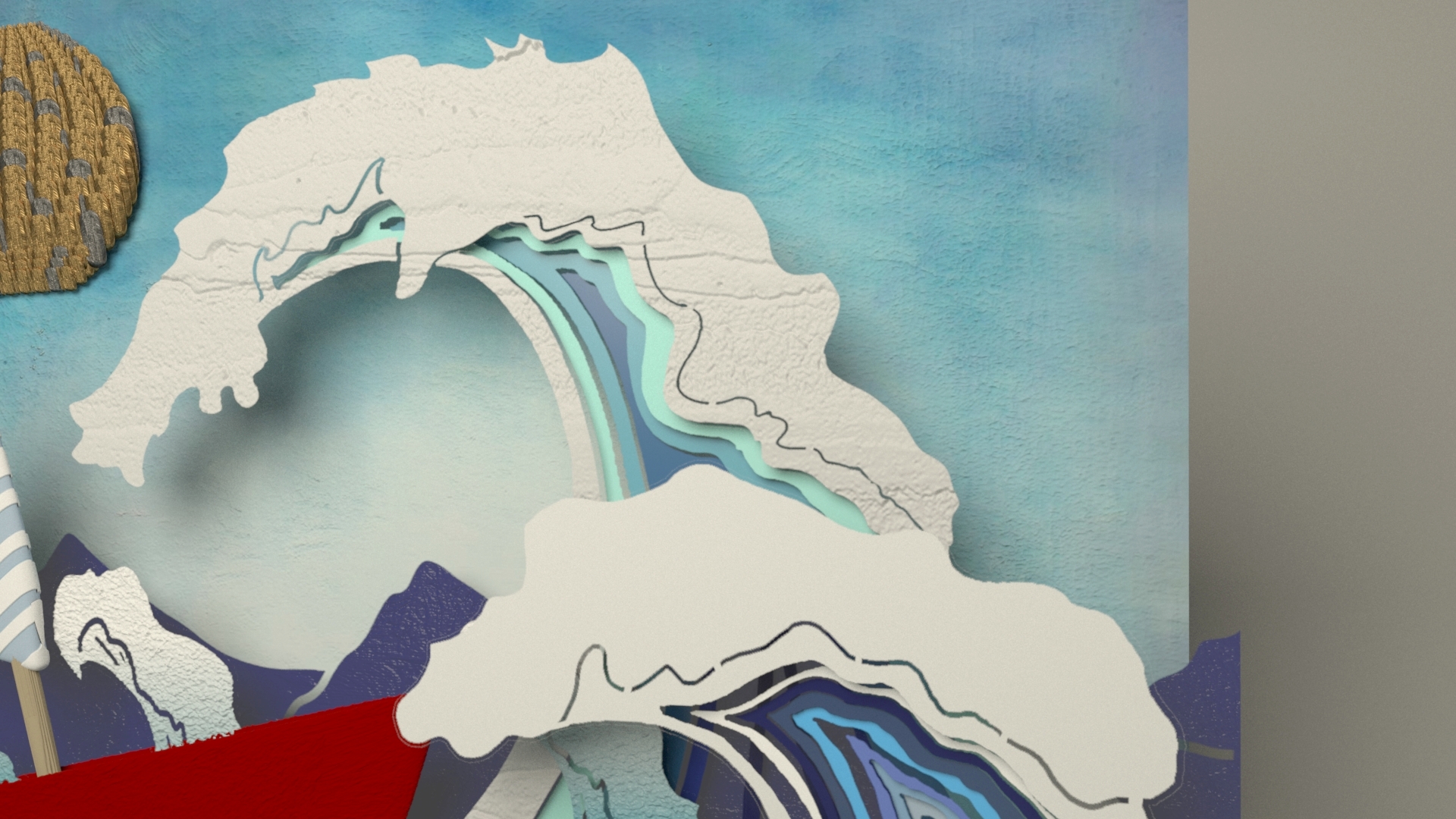 When it came down to the waves I wanted to be sure they still maintained the consistency of paper but while maintaining depth and interest. So I pulled inspiration from my Father’s geography materials. More specifically, his topography books, which give the illusion of depth on a flat piece of paper so why not play with it in CG?