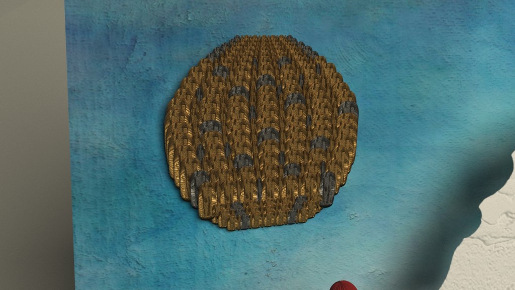 For this project while making the preliminary pop up book I came across a very unique, interesting but oh so complex texture. The texture was not easily photographed and reflections made it unusable for CG use. Thus, I resulted to experimenting with RenderMan’s metallic materials. Although this texture is still far from perfect it does spark and interest in making complex 2D patterns elaborate, user-friendly, and customizable CG texturing tools for complex materials in the future.